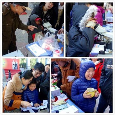 虽然天气寒冷,但大家热情丝毫不减。在活动现场,快速学习答题活动进行的如火如荼,答题桌前挤满了前来参与挑战的同学,挑战者在选取资料卡后认真学习上面的生命科学知识,紧接着工作人员就资料卡上的内容进行提问,答题现场氛围轻松而愉快。“生存法则”挑战更是考验参与者平时对生命科学知识的积累,通过所给动物的形态特征选取他们的生存环境。除此之外,活动现场的显微镜操作更是吸引了许多同学,大家排起长队等待观察神秘的微观世界,参与活动的小朋友在观察了各种玻片标本后也大大增加了对生命科学的兴趣。植物标本展览中,通过将学院学生自己制作的植物标本展览出来,使同学们不用到野外即可认识到多种植物。