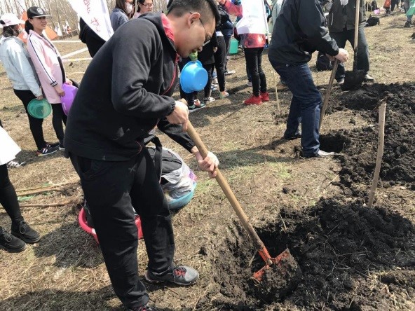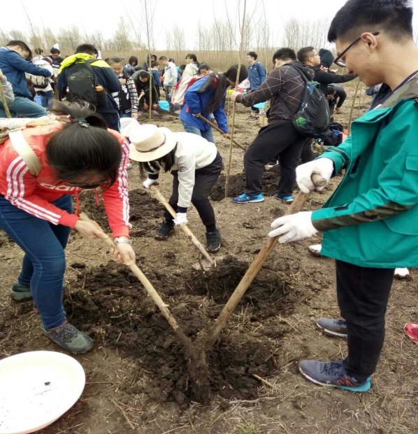 早晨七点半,哈尔滨潮湿的晨风刮得令人打颤,但全体植树的志愿者们早已在哈尔滨工业大学一校区活动中心广场整装待发,一个多小时候后全体人员乘坐大巴车到达太平镇哈达村,步行20分钟左右到达目的地。此时大家激情高昂,寂静而空旷的山村瞬间变得沸反盈天。在各片区小队长的安排下,同志们根据男女比例自觉分成4个小组,并展开了激烈而有意义的比赛;扛苗散苗,挥锹铲土,扶苗踏实,挖坑、栽树、盖土、浇水等各个环节都不含糊。大家各司其职,栽得认真,干得卖力,整个植树现场一片热火朝天。正午时分,大家围在一起一边简单就餐,一边分享劳动的快乐。随后,在片区队长的带领下,全体人员恋恋不舍地乘车返回学校。