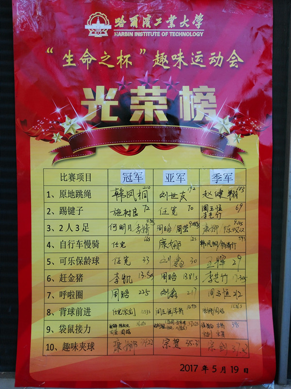 学院部分教师及多名研究生、本科生参加运动会。运动会共设10个项目,采用现场报名参加方式,参照校运动会项目规则进行比赛。并对每个项目前三名给予物质奖励。比赛过程紧凑而激烈,氛围轻松愉悦,老师和同学们在此收获了很多的乐趣和技巧。