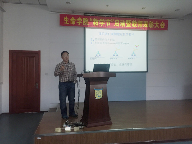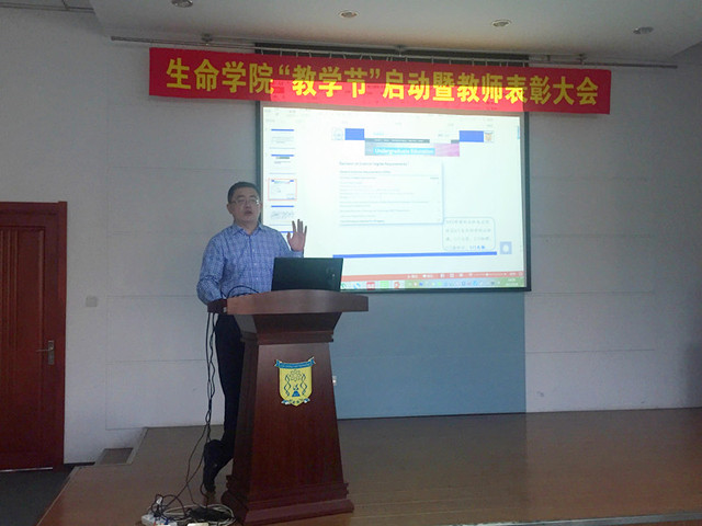 本次教学示范课由优秀青年教师韩凤桐讲授,他承担的本科课程连续五年获得学生评教A的优秀成绩,以其幽默风趣、轻松自如的授课风格深受学生的喜爱,被学院推荐为本次校“教学节”活动优秀教师。韩老师以其讲授的本科课程《基因工程》为例,通过实景授课展示其授课风格和特色,重点介绍了积累的教学经验和心得体会,并向在场教师推荐了其授课过程中使用的辅助软件,与现场教师互动交流。