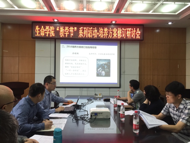 生命学院根据学校关于2016版培养方案修订工作的总体要求部署,多次召开院内大类教学委员会、骨干教师、实验教学中心等交流研讨会,对本科及研究生培养方案进行了全面修订,目前已基本完成了新版培养方案的修订工作。为扎实有效地做好新版培养方案修订工作,学院于2017年6月8日上午9:30在科学院2E栋405会议室召开了培养方案修订研讨会。本科生院副院长齐晶瑶,教研处副处长许志武,数学系尹逊波老师,以及学院大类委员会成员和相关课程教师出席了会议。会议由生命学院副院长聂桓主持。