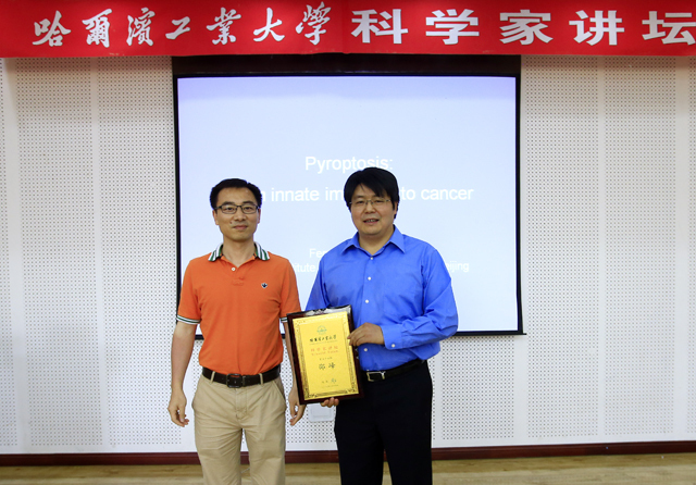 哈工大报讯(李凯/文兰锐/图)近日,中国科学院院士、欧洲分子生物学组织(EMBO)外籍成员、美国微生物学院院士、北京生命科学研究所(NIBS)资深研究员邵峰做客科学家讲坛,作了题为“细胞焦亡-从自然免疫到癌症”的报告。