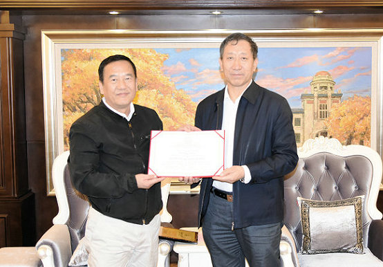 哈工大报讯(王计 文/图)10月24日,美国国家科学院院士、中科院外籍院士、北京生命科学研究所资深研究员、美国德克萨斯大学西南医学中心生化系讲席教授王晓东来校访问,为我校师生作了题为“细胞程序性死亡通路及其治疗意义”的报告。校长周玉会见了王晓东教授,并为其颁发“科学家讲坛”主讲嘉宾聘牌、生命科学中心科学指导委员会委员聘书。