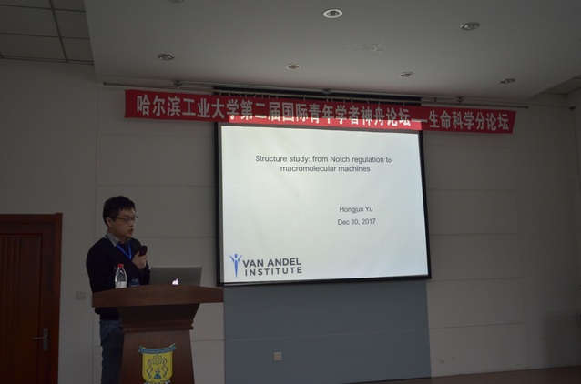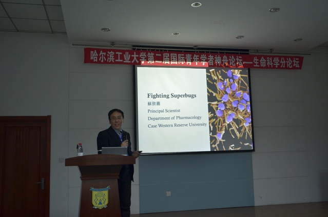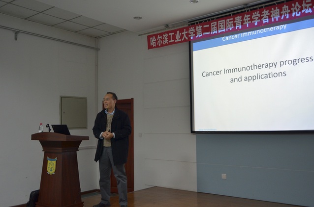 哈尔滨工业大学第二届国际青年学者神舟论坛---生命分论坛于12月30日下午在哈工大科学园2E栋411会议室成功举办。冷泉港实验室任捷博士、Van Andel研究所于洪军博士、凯斯西储大学苏致嘉博士和辉瑞制药公司常炳圣博士做主题报告,院长黄志伟、院党委书记李钰等全体院领导、学院教授会成员、教师代表、部分本硕博学生代表参加本次分论坛。分论坛由院长黄志伟主持。