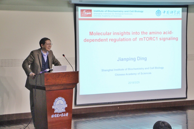329日,应我校生命学院邀请,中国科学院上海生化细胞所研究员、国家杰出青年基金获得者丁建平博士来我校访问,并为生命学院师生做了题为Molecular Insights into the Amino Acid-dependent Regulation of mTORC1 Signaling的报告。本次报告由院长黄志伟主持。