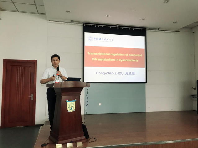 7月11日上午,应我校生命学院/生命科学中心邀请,安徽省生物化学与分子生物学学会理事长、科技部重大研究计划首席科学家、科技部重点研发计划指南编写专家组成员—中国科学技术大学周丛照教授;教育部“新世纪优秀人才”、上海市“浦江人才”获得者—中国科学技术大学陈宇星教授来访我校,并做题为“Transcriptional regulation of concerted C/N metabolism in cyanobacteria”、“Structure of a MacAB-like efflux pump from Streptococcus pneumoniae”的报告;本次报告由院长黄志伟教授主持。