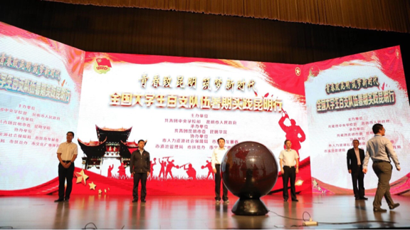 8月7日上午,由昆明市人民政府联合团中央学校部共同主办的“青春致昆明筑梦新时代”全国大学生百支队伍暑期实践昆明行活动在昆明会堂隆重开幕。来自全国各地高校的百支暑期实践队伍齐聚昆明,为昆明发展献才献智。