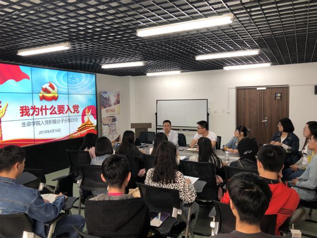 4月16日中午,生命科学与技术学院在明德楼B305会议室召开学院入党积极分子交流讨论会。学院党委副书记喻庆勇、专职组织员田庆彬出席了本次讨论会并与生命学院2019春季学期参加培训的16名入党积极分子进行了交流。