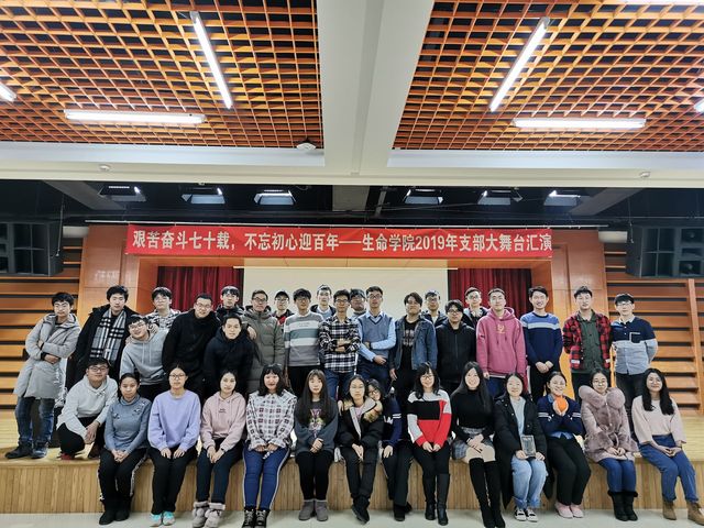 增进支部凝聚力,展示支部风采,2019年12月10日晚,生命学院 “艰苦奋斗七十载,不忘初心迎百年”2019年支部大舞台汇演在活动中心201成功举办。学院辅导员佟宇佳老师和学院本科生参加了本次活动。