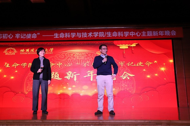 院领导在晚会中致辞,为学院、中心全体师生送上了新年祝福,院长黄志伟对过去一年中学院和中心所取得的成绩和大家的辛勤付出表示衷心的感谢。他强调:正值生命学院成立九周年,生命中心成立四周年之际,希望全院师生能够一起感受自由科学发现之美,同心协力谱写原创生命科学研究的新篇章。精彩的节目将晚会一次次推向高潮。最后,晚会在合唱《我和我的祖国》中圆满落幕。