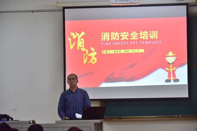 随后,保卫处赵艳伟老师带来了关于消防安全知识的讲解。结合全国各地高校校园火灾典型案例及实验室消防安全基本知识,详细讲解了寝室和实验室发生火灾的主要诱因、不同情况的灭火手段,介绍了火场逃生的对应方法及注意事项。同学们获益匪浅,进一步认识到了加强消防安全意识的必要性,将消防安全知识牢记在心。