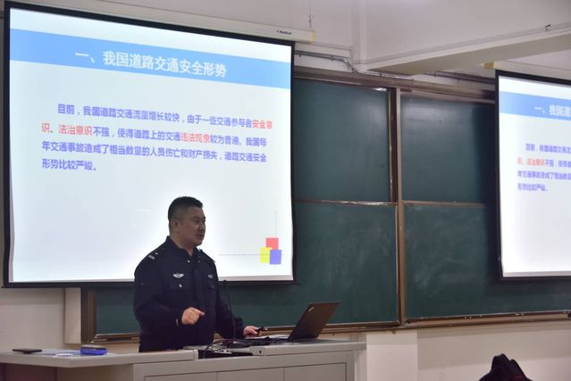 讲座伊始,王警官结合自己多年的工作经验,就常见的大学生交通事故的主要表现形式进行讲解,以具体交通事故案例为切入点,向学生们讲授了安全过马路、安全乘车、安全骑车、识别道路交通标志线及遇到交通事故怎么处理等交通安全常识。 “改变命运的不只有知识,事故也可以。”生动的讲解和幽默的表现形式引人入胜,鲜活的案例又发人深省,让师生们警钟长鸣。