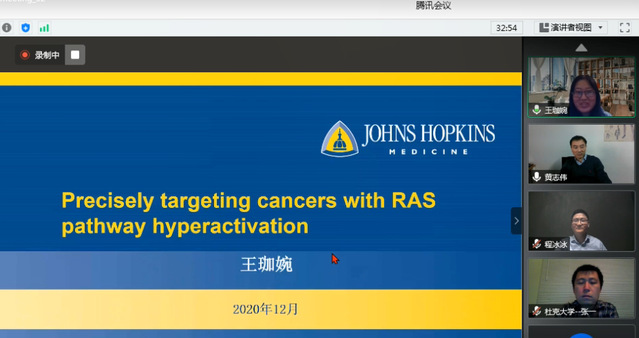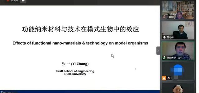 来自约翰霍普金斯大学王珈婉博士、卡尔加里大学的程冰冰博士以及杜克大学张一博士分别作了Precisely targeting cancers with RAS pathway hyperactivation、聚焦超声在生物医学高分辨率多模态成像和定向药物递释中的应用、功能纳米材料与技术在模式生物中的效应的报告。与会专家们和青年学者就报告中提出的热点问题展开了热烈的讨论。