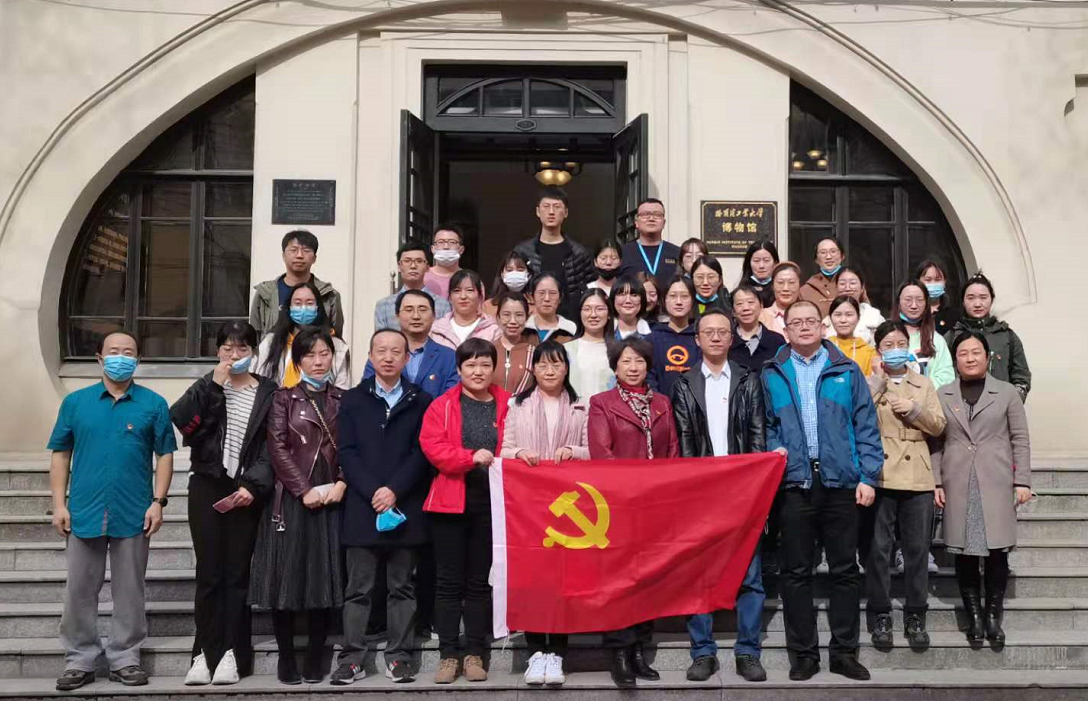 参观完哈工大博物馆,全体党员满腔热忱,在学院党委书记白玉蓉的领誓下,全体党员面向党旗郑重宣誓,重温入党誓词,回顾初心使命,坚定理想信念。