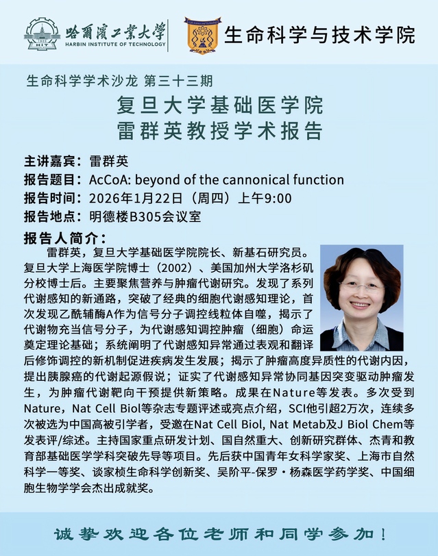 【生命科学学术沙龙第三十三期】复旦大学基础医学院雷群英教授学术报告